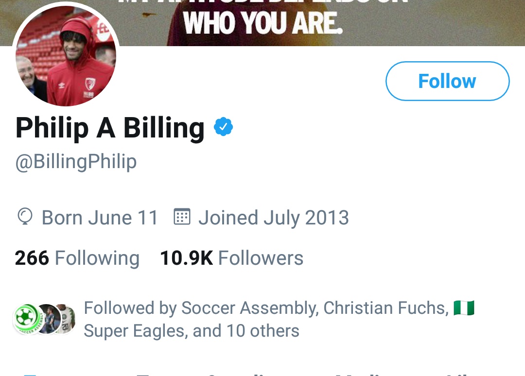 Billing who signed for Premier League outfit AFC Bournemouth on a long-term contract for a £15 million fee in 2019 has followed the Super Eagles officially on Twitter to further put exclamation to the speculations.
