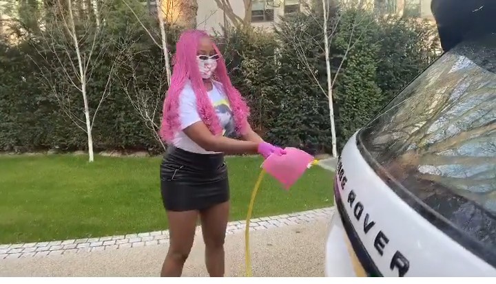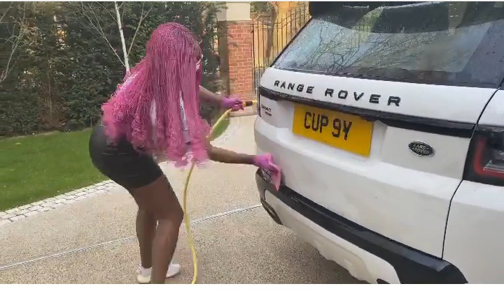 DJ Cuppy is the daughter of astute businessman, Femi Otedola.She shared a picture on her Instagram where she was washing her Range Rover car.