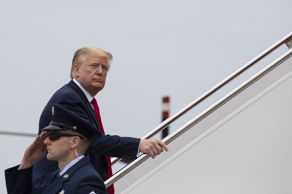 President Donald Trump boards Air Force One as he departs Thursday, May 21, 2020, at Andrews Air Force Base, Md. Trump will visit a Ypsilanti, Mich., Ford plant that has been converted to making personal protection and medical equipment. (AP Photo/Alex Brandon)