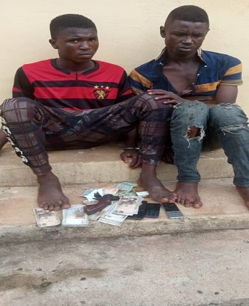 “Suspects were caught red-handed while robbing innocent passersby of their belongings at Upper Iweka. On sighting the police operatives suspects engaged them in a shoot out and took to their heels when overpowered. They were pursued and arrested with the assistance of the local vigilante group in the area.